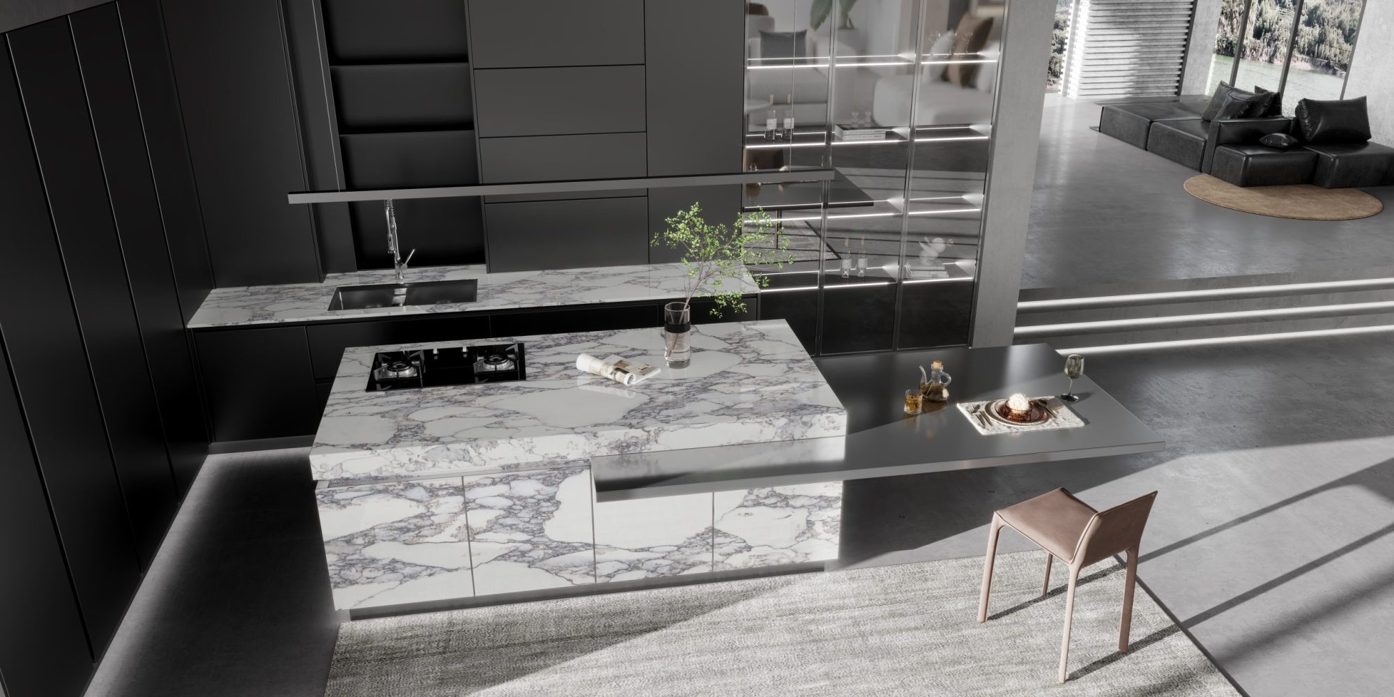 Viola Light is a masterpiece of contrast, defined by a luminous white canvas swept with high-energy, charcoal-gray veining. This rhythmic, flowing pattern brings a sense of organic movement to any room, transforming everyday surfaces into sculptural elements. It is the definitive choice for designers looking to anchor a space with a bold, high-contrast signature that feels both ancient and ultra-modern.
